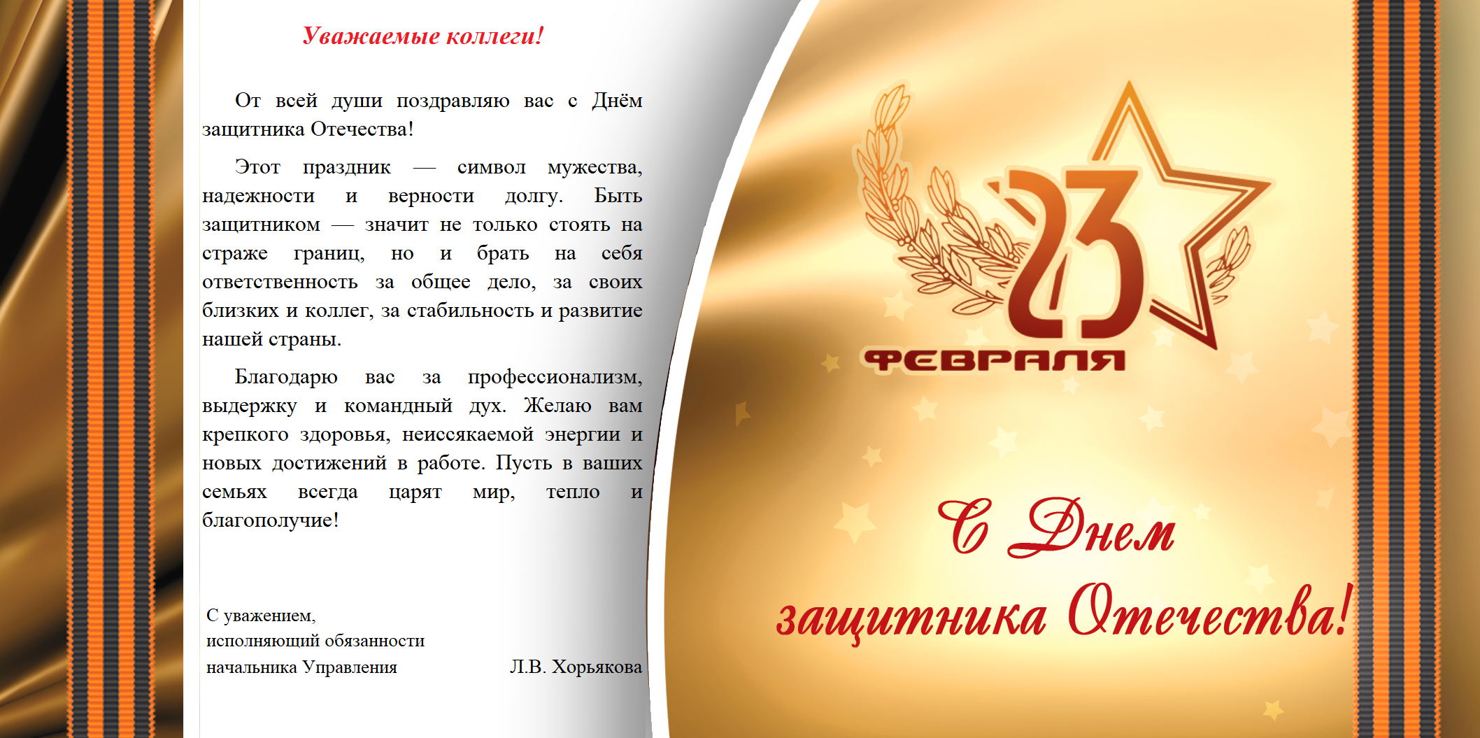 | Исполняющий обязанности начальника Управления Л.В. Хорьякова поздравила коллектив с Днём защитника Отечества | версия для печати |